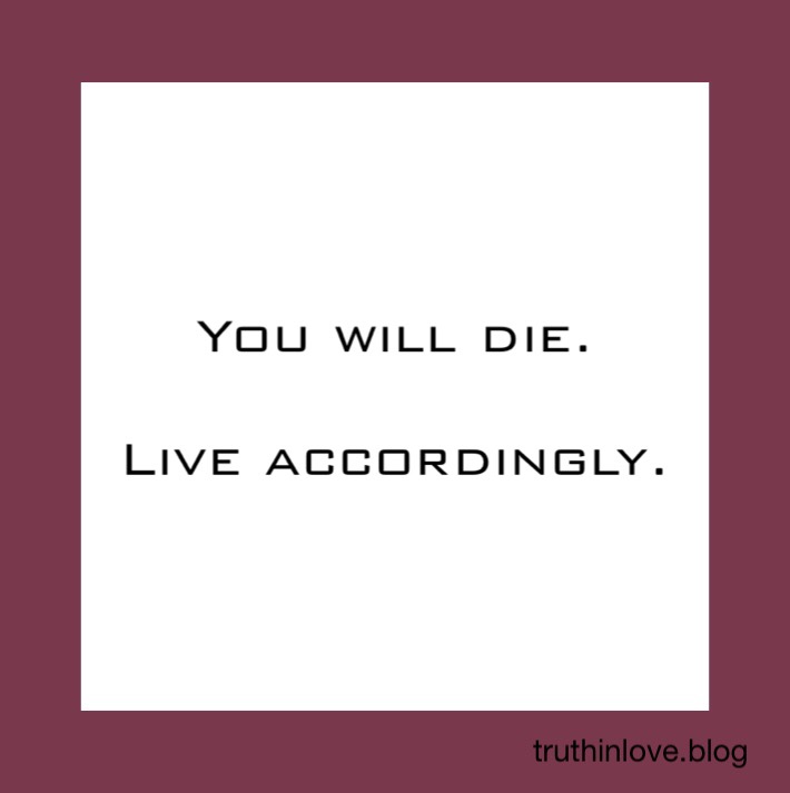You will die. Maybe you don’t want to hear that but let me say it again….YOU WILL DIE!